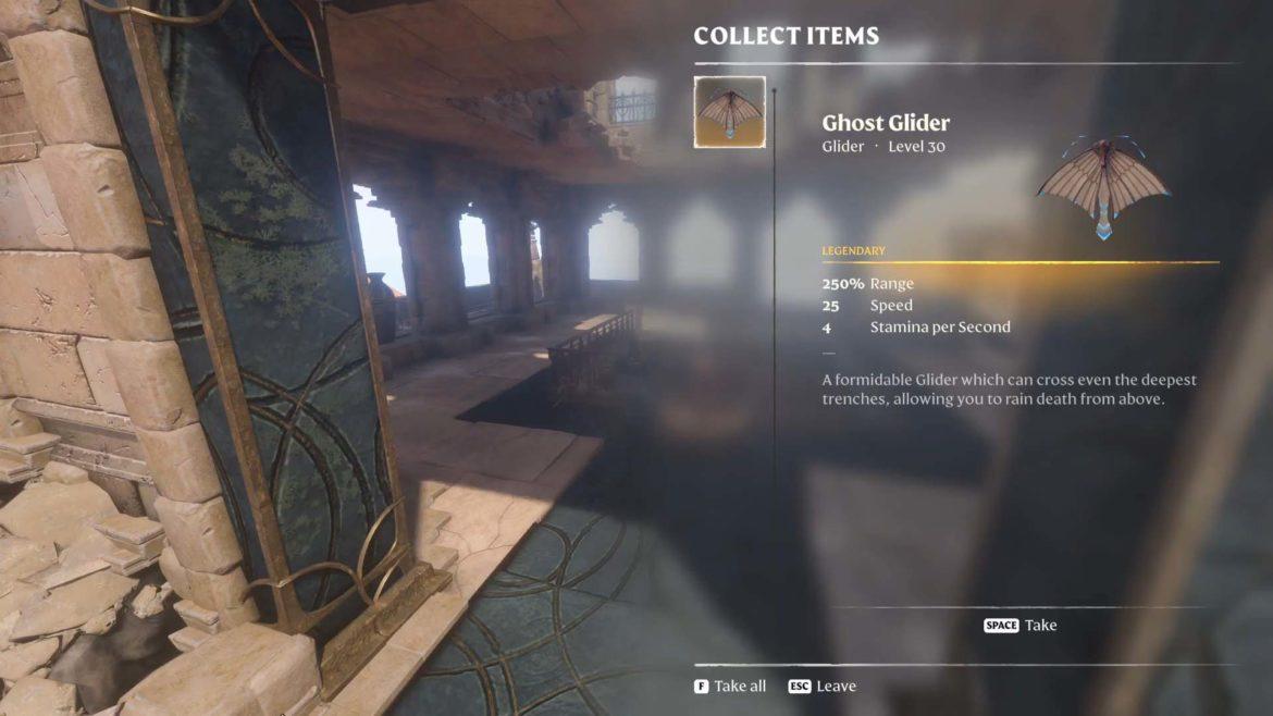 На этом уровне вы найдете светящийся золотой сундук с легендарным глайдером-призраком, лучшим в Enshrouded!