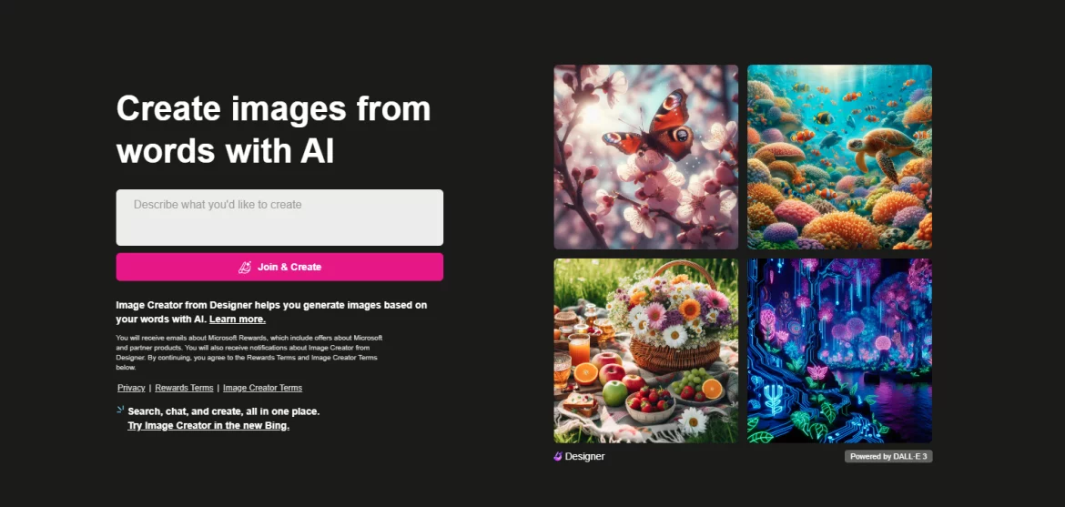 Какую модель преобразования текста в изображение использует Bing AI Image Generator?